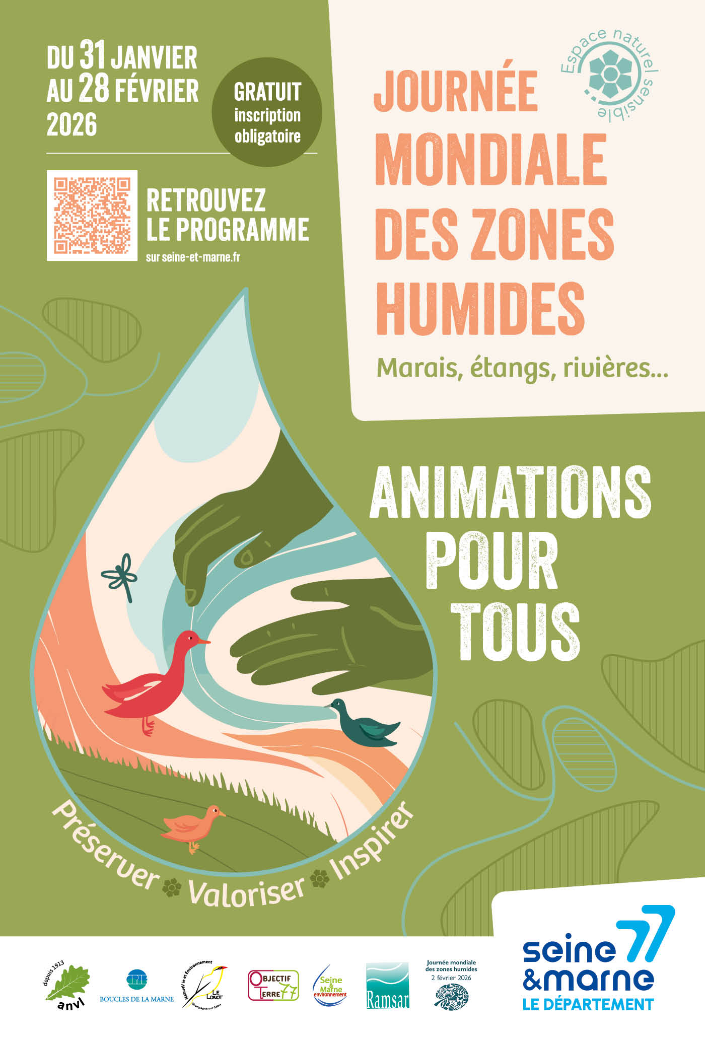 En Seine-et-Marne, 17 des 29 Espaces Naturels Sensibles ouverts au public sont des zones hu-mides. Du 31 janvier au 28 février 2026, une quinzaine d’animations pédagogiques et de sorties nature seront proposées pour mieux connaître ces milieux d’exception.