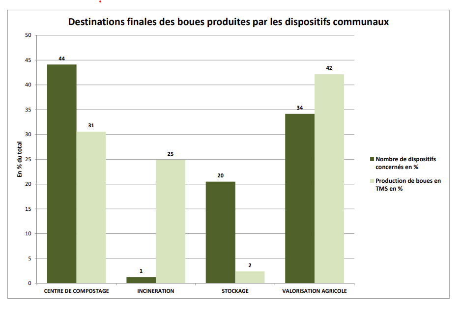 Aujourd’hui, 73 % des boues produites sur le département ont une destination agricole par épandage directe (42 %) ou après compostage (31%), contre 99 % en 2009. Toutes les boues utilisées directement en agriculture font l’objet d’un suivi agronomique. 25% des boues sont incinérées. 2 % des boues produites sont stockées sur site avant élimination et concernent essentiellement les filières de traitement des boues par lits plantés de roseaux dimensionnés pour stocker les boues pendant au moins 10 années. En 2024, aucune boue n’a fait l’objet d’une évacuation en centre de stockage de déchets ultimes (absence de boues contaminées par des micropolluants).